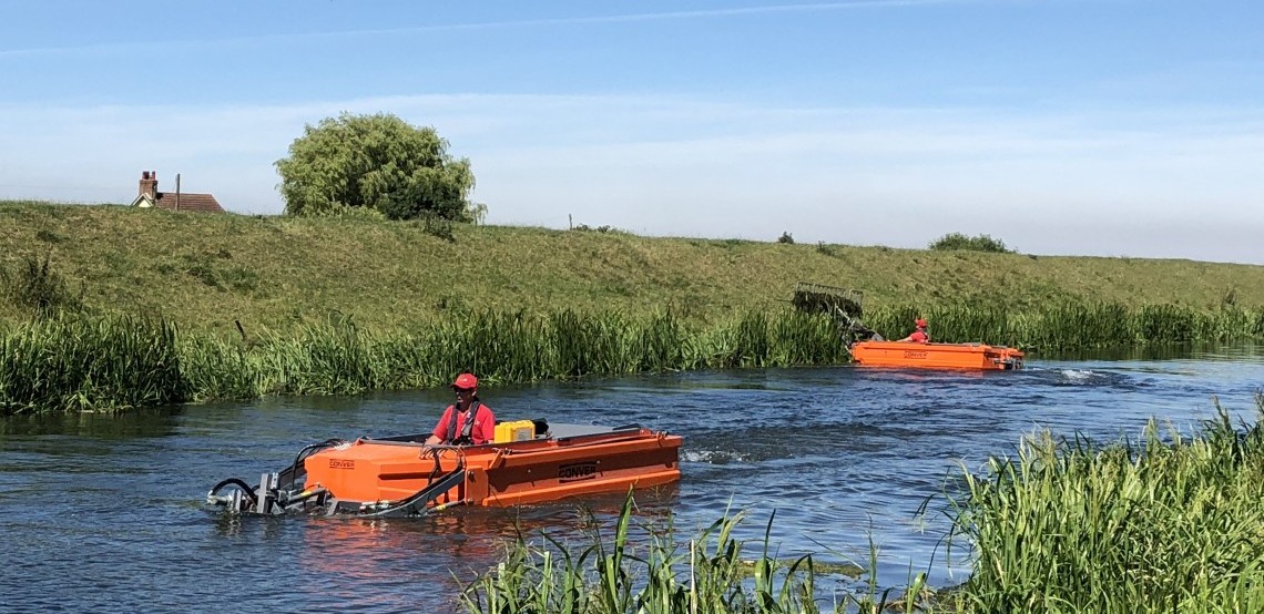 A versatile mowing boat that offers flexibility and efficiency for a variety of applications in water management.