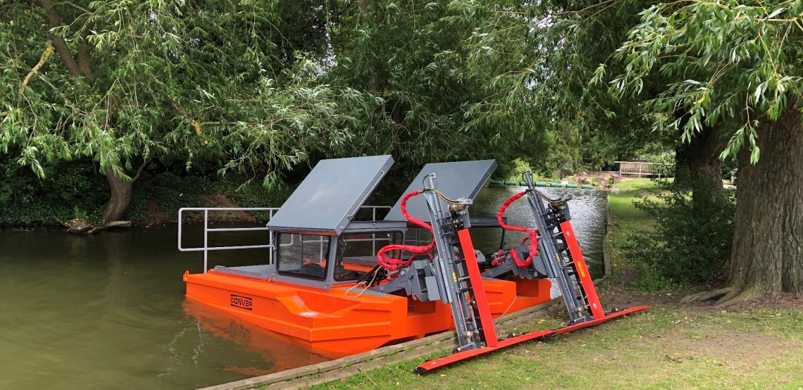 Conver mowing boats have been specially developed for removing vegetation from embankments and flow profiles of waterways and lakes from water. Thanks to their well-thought-out design and the use of only high-quality components, the mowing boats are reliable under all conditions and can therefore be used for a wide range of applications. The C485 is the top model in the series of Conver mowing boats.