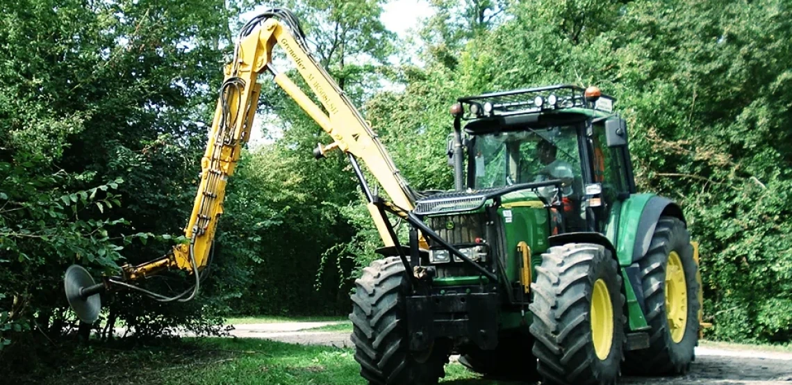 The circular saw is suitable for pruning tree branches of 2 to 20 cm in diameter. The circular saw can be fitted with more than one saw blade and is driven by a hydraulic motor. The circular saw is easy to position using the jib set, making it possible to reach places that are usually difficult to reach.